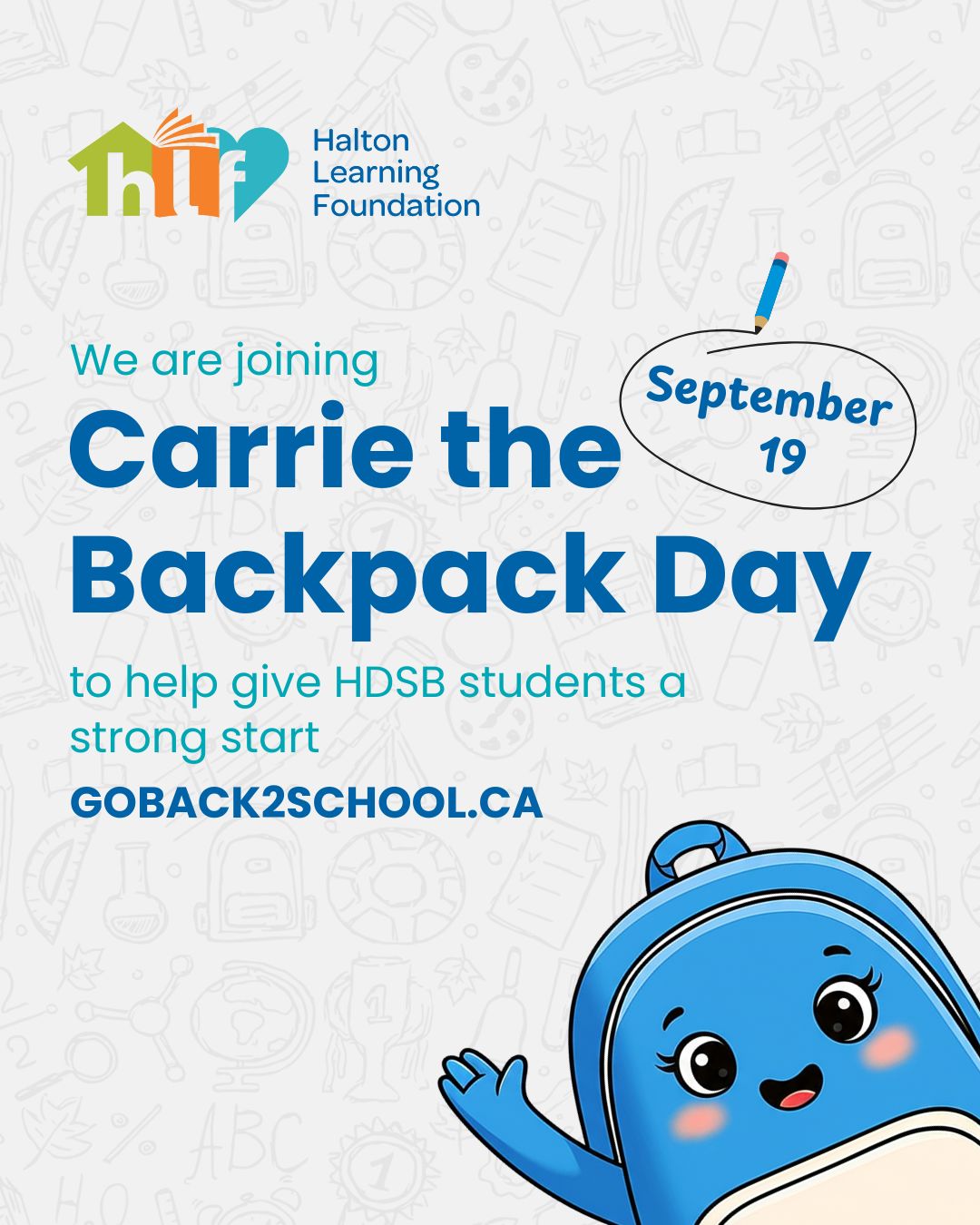 Carrie the Backpack is the friendly, animated mascot for our 2025 Back to School Campaign, dedicated to fundraising for HDSB students as the new school year begins.